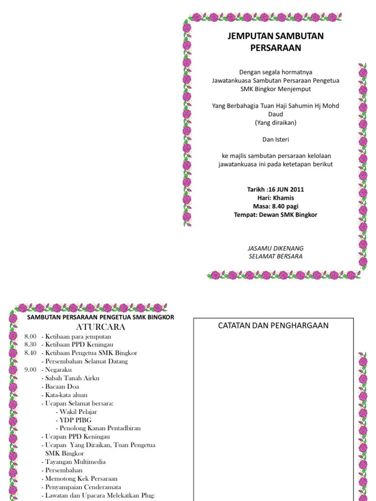Teks ucapan majlis perpisahan 1. Dari bintulu ke kota kuching hendak. Garam ada kicap pun ada, sayang lada terlupa bagi; Pantun bacaan doa kalau pergi tanjung keramat, anak manis jangan diangkat;